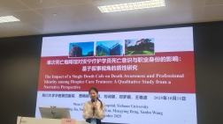 2025年10月11日,我院姑息医学科护士贾艳皊、龚琴琴、邓梦颖受邀参加在澳门举办的“第十届中国当代生死学研讨会”。本次会议汇聚了海内外众多专家,围绕生死教育、临终关怀等前沿议题展开深入探讨。 会上,我院护士贾艳皊和邓梦颖分别分享了口头报道,她们的发言展现了我院在临终关怀领域的创新实践与深度思考。 此次参会,不仅让护士们汲取了全球前沿理念,还将本土临床成果推向国际交流平台,为推动我院在临终关怀领域的创新发展、优化安宁疗护专科护士的教育培训及提升生命关怀服务质量注入了新的动力。
