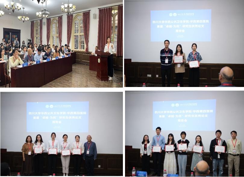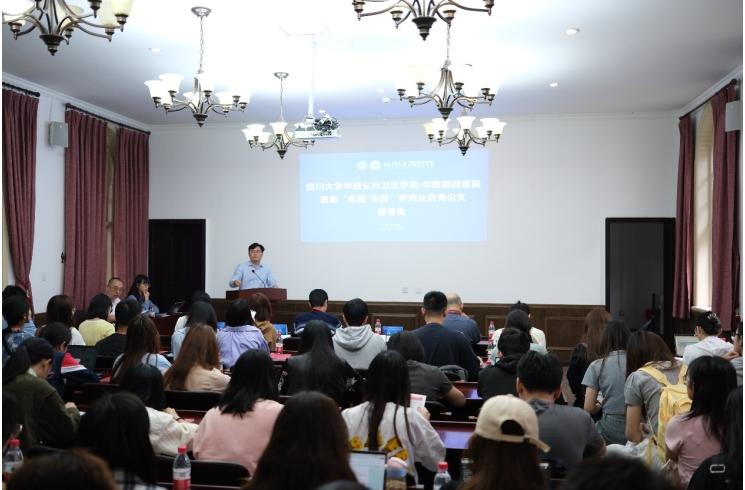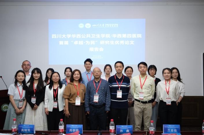 为深入贯彻落实“产教融合”协同育人理念,提升研究生学术水平,搭建高水平学术交流平台,促进优秀研究成果的分享与交流,华西公共卫生学院/华西第四医院于5月10日成功举办了首届“卓越 为民”优秀研究生论文报告会。学院/医院副院长孙鑫出席活动并讲话。四川省疾病预防控制中心主任技师肖崇堃,成都市疾病预防控制中心主任医师高绪芳,劳动卫生与环境卫生学系教授兰亚佳,卫生检验与检疫学系副主任李永新,健康与社会行为学系副主任周峻民