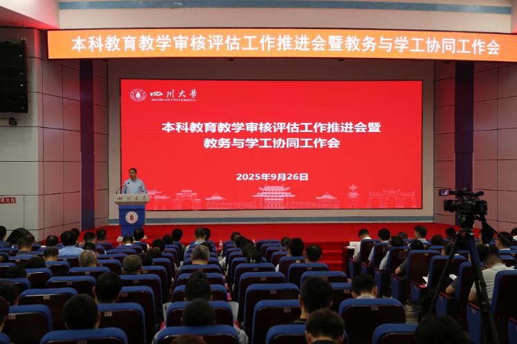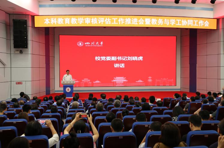9月26日,学校在望江校区东三教汇文演播厅召开本科教育教学审核评估工作推进会暨教务与学工协同工作会。副校长游劲松、校党委副书记刘晓虎等校领导,各机关部门、业务单位主要负责人,学院(系)主要负责人、教学院长、学工书记,校本科教学督导委员会委员,机关部门、业务单位评估联系人,学院(系)党政办主任、教学科科长、学生科科长及相关工作人员参加会议。会议由学工部部长熊伟主持。